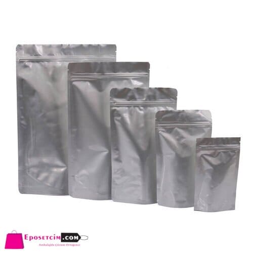Alüminyum Kilitli Doypack Poşet ürünlerimizin ön yüzü arka yüzü ve iç kısmı komple alüminyum materyaldir.