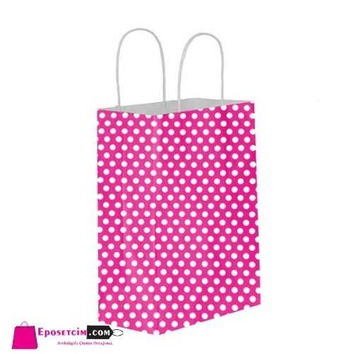 Puantiyeli Fuşya Kağıt Hediye ve Alışveriş Poşeti