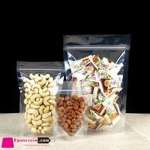 Şeffaf Kilitli Doypack Poşet ürünlerimizin ön yüzü ve arka yüzü komple şeffaftır.