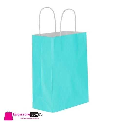Büküm saplı turkuaz kağıt poşetleri hediye paketlemede, özel günlerinizde, organizasyonlarda vb. alanlar da rahatlıkla kullanabilirsiniz.