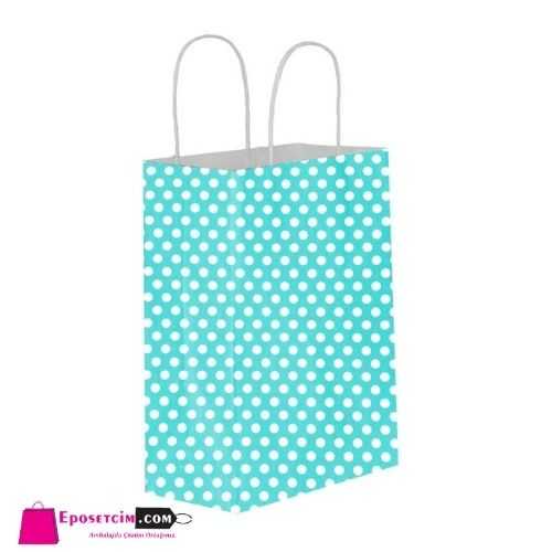Turkuaz Puantiyeli Kağıt Hediye ve Alışveriş Poşeti